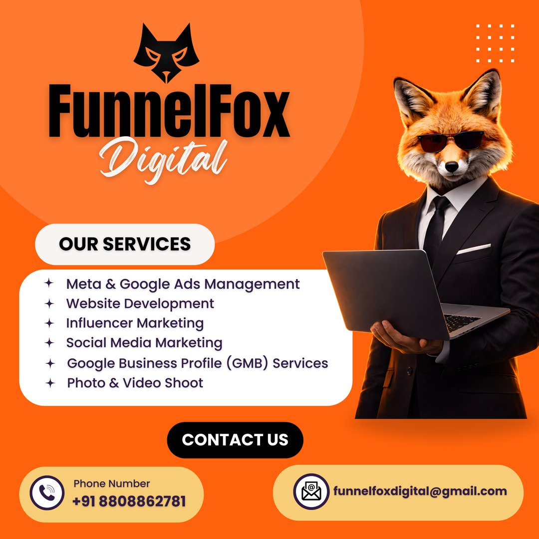 FunnelFox Digital is a professional digital marketing agency providing result-driven online marketing services for businesses. We specialize in Google Ads lead generation, Meta Ads management, social media marketing, Google Business Profile (GMB) services, local SEO, website development, and brand promotion. Our team helps businesses grow with high-quality leads, better online visibility, and ROI-focused marketing strategies. We offer complete GMB profile setup, suspension recovery, ranking optimization, and monthly profile management. At FunnelFox Digital, our goal is to help startups, local businesses, and brands attract more customers, increase sales, and build a strong digital presence. Contact us today for affordable and effective di